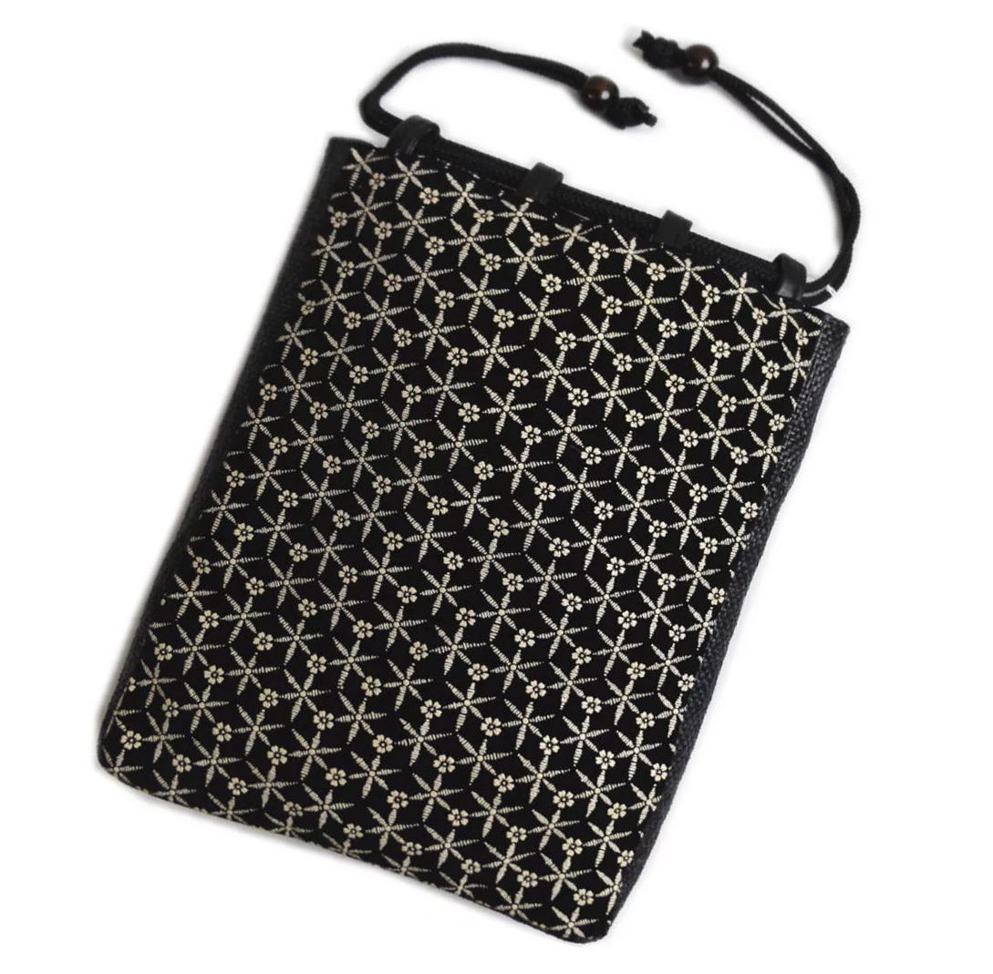 信玄袋 巾着 バッグ メンズ 男性 印伝調 マチ編込 黒色地小桜亀甲 日本製 木玉付 浴衣 甚平 着物 ゆかた きもの 男物 紳士用 粋 和柄