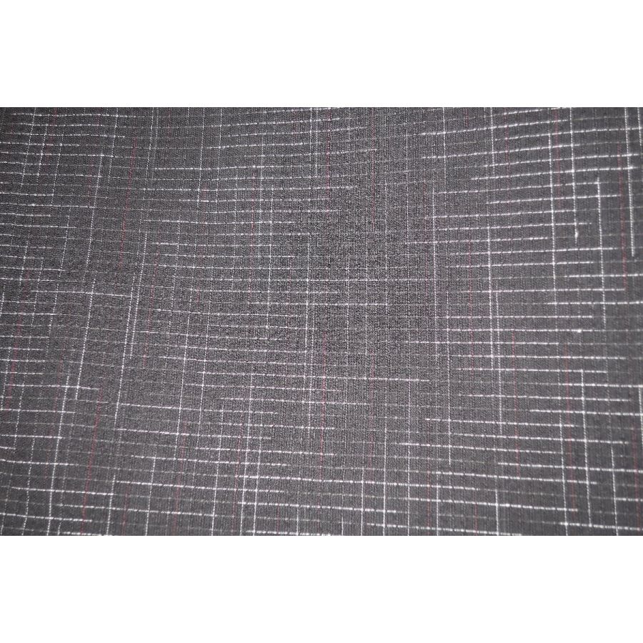 綿85%、麻15%の墨黒地に白と錆び朱の矢鱈織絣です。