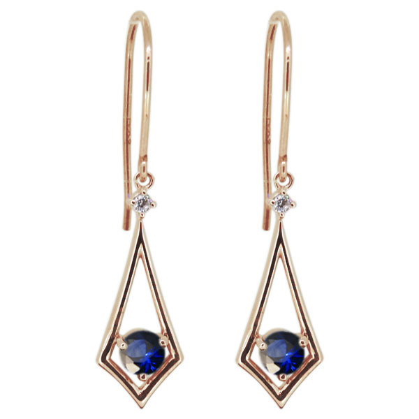 フレームピアス サファイア レディース フックピアス 18金 ひし形 プレゼント 母の日