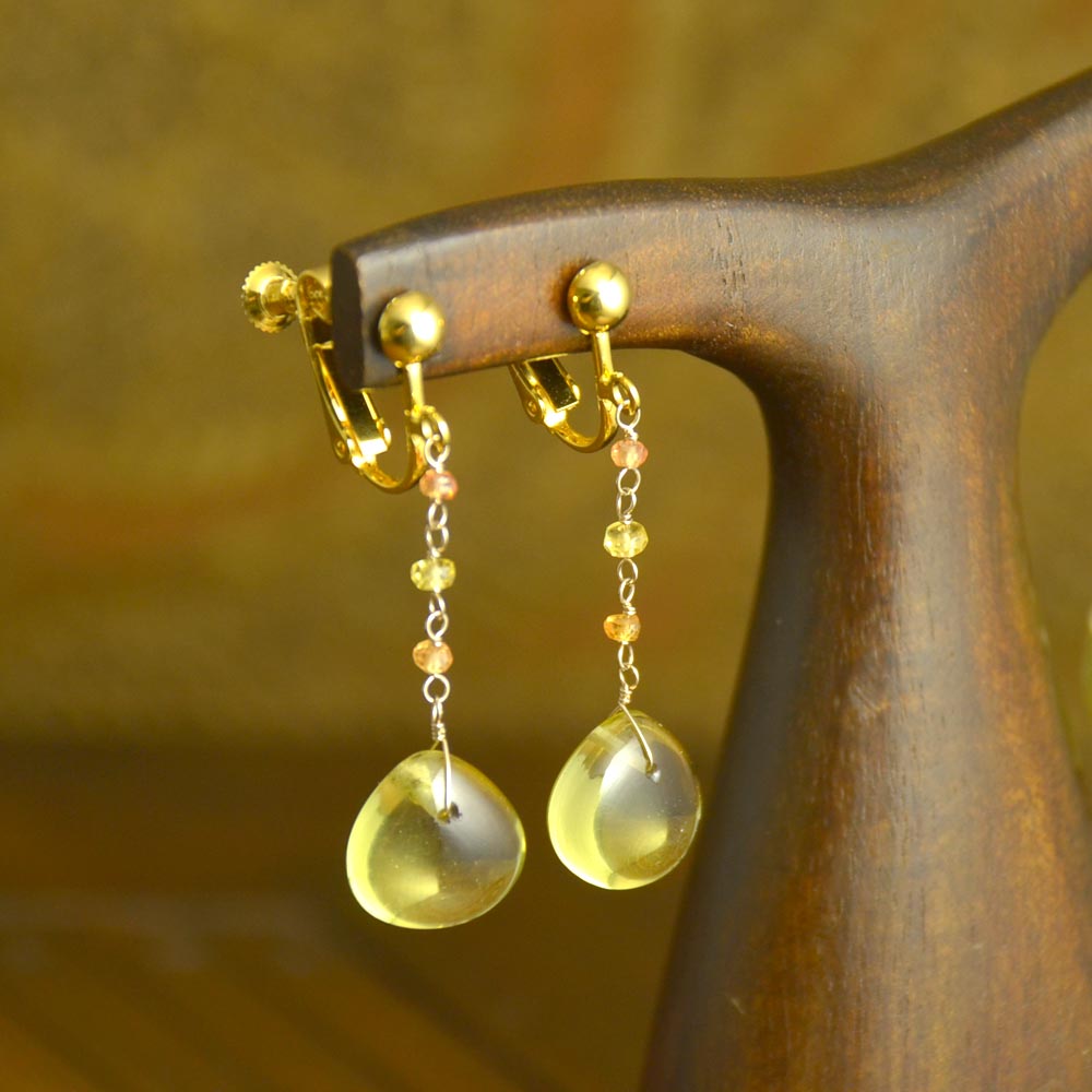 K10 10金 レモンクォーツ ハート カット サファイア ロング イヤリング ピアス