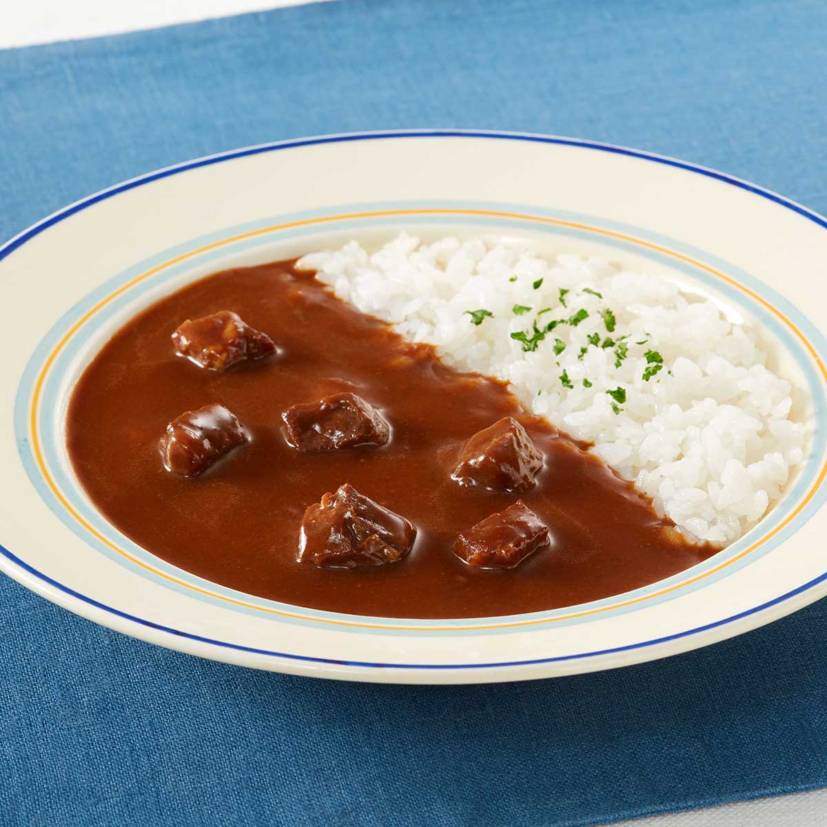 ビーフカレー中辛/栄養成分表示1袋(200gあたり) 熱量 208kcal たんぱく質 8.4g 脂質 9.8g 炭水化物 21.1g 食塩相当量 2.4g ビーフシチュー/栄養成分表示1袋(200gあたり) 熱量 228kcal たんぱく質 10.4g 脂質 12.5g 炭水化物 17.3g 食塩相当量 2.2g 煮込みハンバーグ/栄養成分表示1袋(220gあたり) 熱量 297kcal たんぱく質 18.4g 脂質 17.4g 炭水化物 16.8g 食塩相当量 2.4g ハヤシ/栄養成分表示1袋(200gあたり) 熱量 200kcal たんぱく質 7.9g 脂質 10.6g 炭水化物 18.1g 食塩相当量 2.6g この表示値は推定値です*ハヤシは500W約2分です。