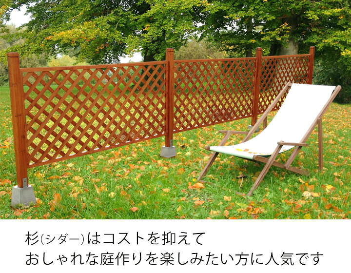 お手軽さと軽量ゆえの施工のしやすさで人気を博している、シダー(杉)製ラティスフェンスです。