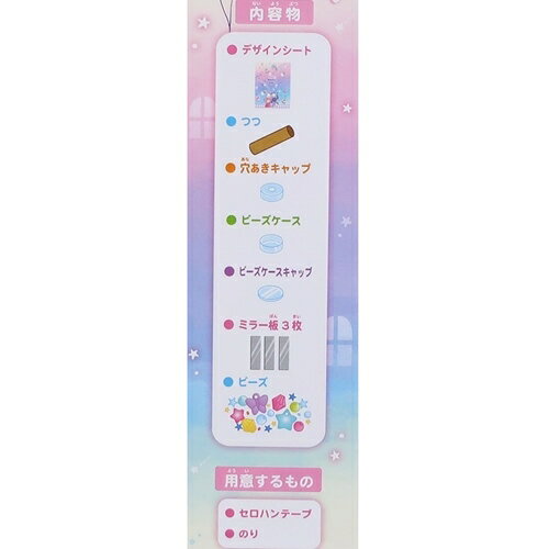 自分だけのオリジナルをつくろう!工作キット 万華鏡キット 自由研究 女の子向き 小学生おうち時間が楽しくなるかんたんたのしい工作キット[つくろうシリーズ]こちらはかわいい[プリズム万華鏡キット]煌びやかできれいな自分だけのオリジナル万華鏡をつくれちゃうデザインいろいろあるのでお気に入りを揃えてくださいパッケージサイズ:約110x210x50mmセット内容:デザインシート、つつ、穴あきキャップ、ビーズケース、ビーズケースキャップ、ミラー板3枚、ビーズ