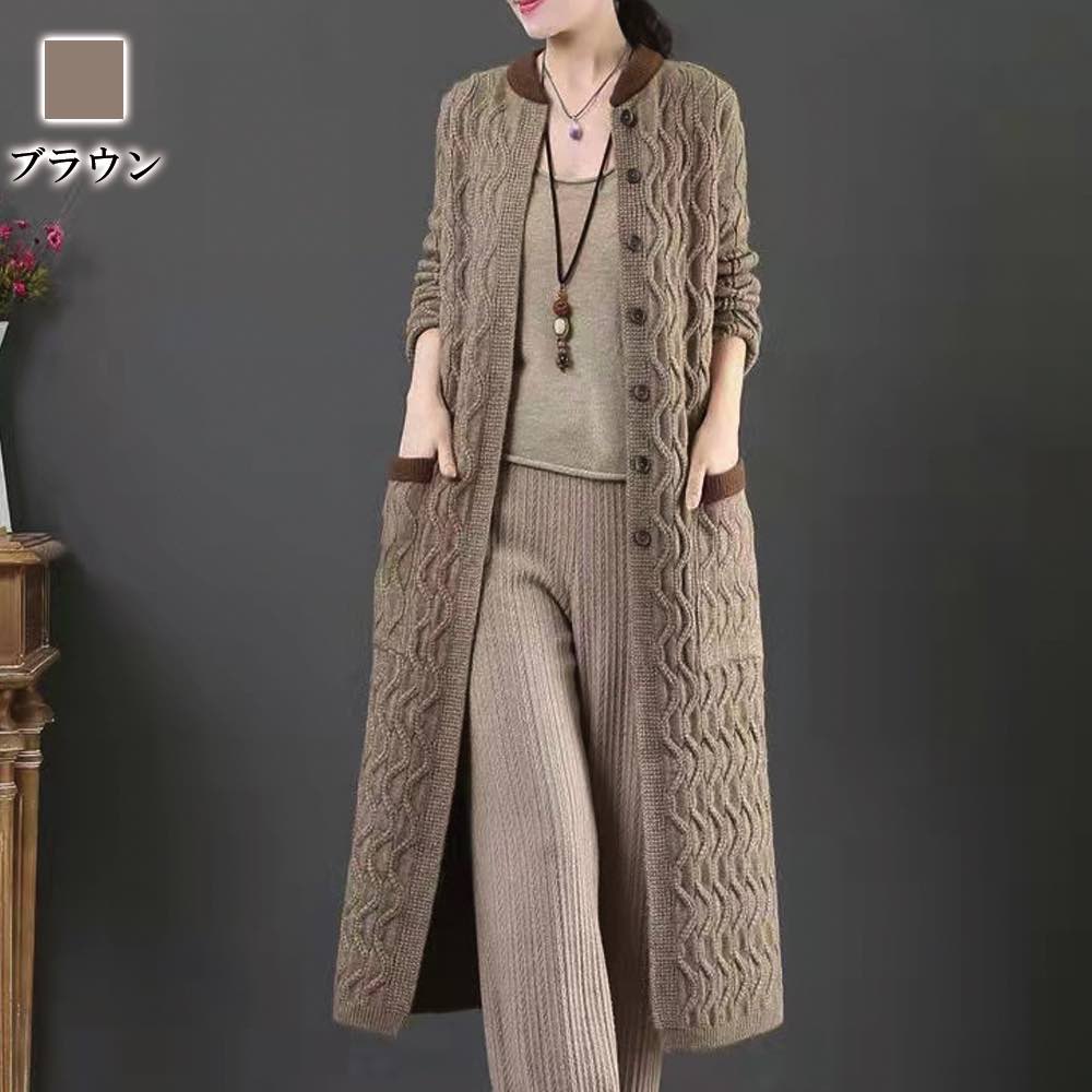 【商品名】スリムロングニットカーディガン【カラー】ブラウン ベージュ グレー【サイズ】M L XL 2XL 3XL【サイズ表記】・Mサイズ:着丈105 身幅102 袖丈54・Lサイズ:着丈106 身幅106 袖丈54・XLサイズ:着丈107 身幅110 袖丈55・2XLサイズ:着丈108 身幅113 袖丈55・3XLサイズ:着丈109 身幅117 袖丈56【素材】コットンブレンド【重量】1.0kg【季節】春 秋 冬【スタッフコメント】ベーシックなカラー感でどんなスタイリングでも使いやすい着やすいロングカーディガン。