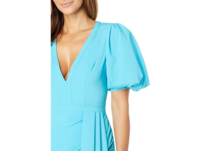 (取寄) ワン33 ソシアル レディース ストレッチ クレープ ドゥ チャイナ パフ スリーブ ドレス ONE33 Social women Stretch Crepe De Chine Puff Sleeve Dress Aqua