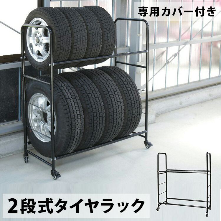 【タイヤラック】 残りわずか!カバー付き キャスター付き 普通自動車用 普通車用 8本 4本 タイヤ収納 縦置き 2段式 保管 物置 タイヤスタンド ワイドサイズ 2台用 スタッドレス 国産 日本製 ハインズワーク 燕三条