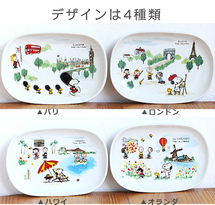 [スヌーピー 食器セット]スヌーピー 楕円 プレート ニューヨーク & スイス(2柄組)● サンドイッチとウインナー、おにぎりとお漬物、卵焼きなど、朝ごはんをワンプレートで。●深さがあるので、多少の汁気もOK!●揚げ物などのおかず皿としても。