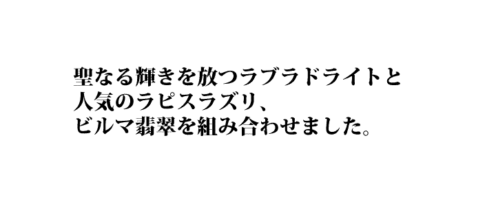聖なる虹色の輝きを放つ!ラブラドライトと 人気のラピスラズリ&ビルマ翡翠のブレスレットです! ●ラブラドライトについて 石の表面に虹色の輝きが現れる、神秘的なパワーストーンのラブラドライト。