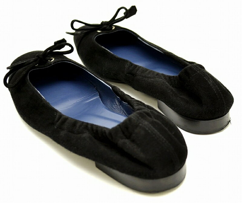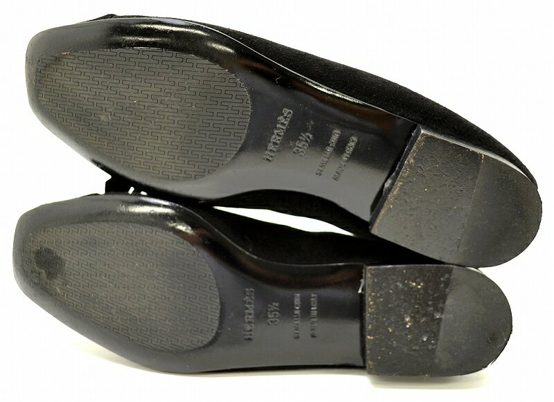 【靴】HERMES エルメス フラットシューズ バレエシューズ ラウンドトゥ シャーリング ヌバック 黒 ブラック #351/2 【中古】