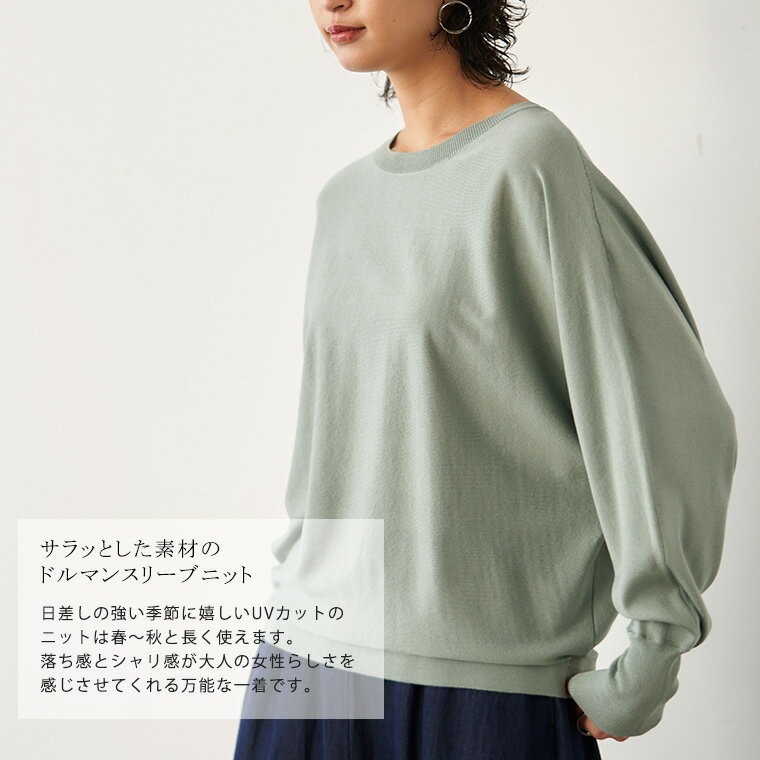 UVカット ドルマン プルオーバートップス レディース カットソー サマーニット ひんやり 機能 ドルマンスリーブ 体型カバー 長袖 クルーネック シンプル カジュアル きれいめ 上品 ゆったり 楽ちん エコ 夏 M/Lサイズ 洗濯可 for/c フォーシー 楽天ルーム 【メール便可】