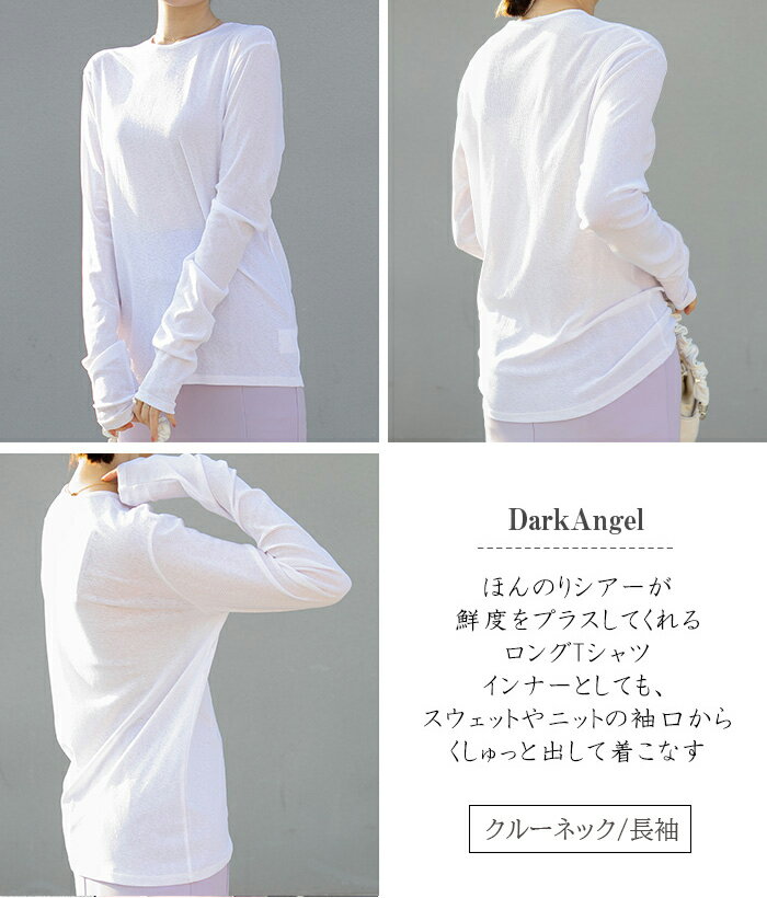 [関連ワード]ほんのりシアーが鮮度をプラス シアー ロング tシャツ 長袖 レディース 重ね着 シアートップス レイヤード インナー 白 無地 シースルー トップス クルーネック UVケア 透け感 tシャツ 体型カバー ホワイト ブラック 黒 グレー 【 シアーロングスリーブTシャツ 】kharis/カリス