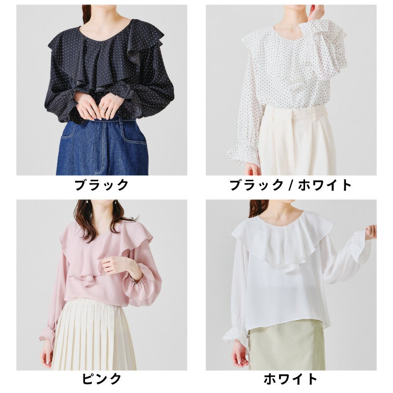 【18日0:00〜ポイント5倍!!】レディース トップス ブラウス シャツ 長袖 オフィス 通勤 フリル フレア《acro》アクロ フレア衿ブラウス