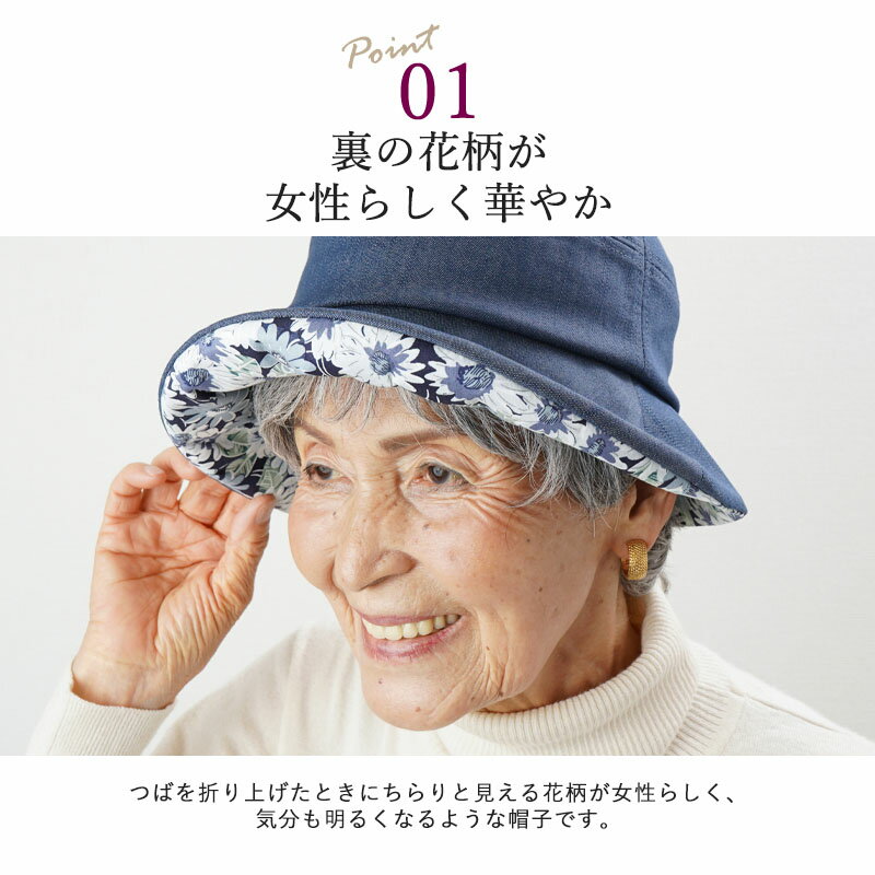 シニアファッション レディース 80代 70代 60代 90代 秋冬 デニム調×花柄日よけ帽子 おばあちゃん 服 プレゼント 婦人服 女性 ミセス 祖母 お年寄り 老人 高齢者 敬老の日 プレゼント ギフト