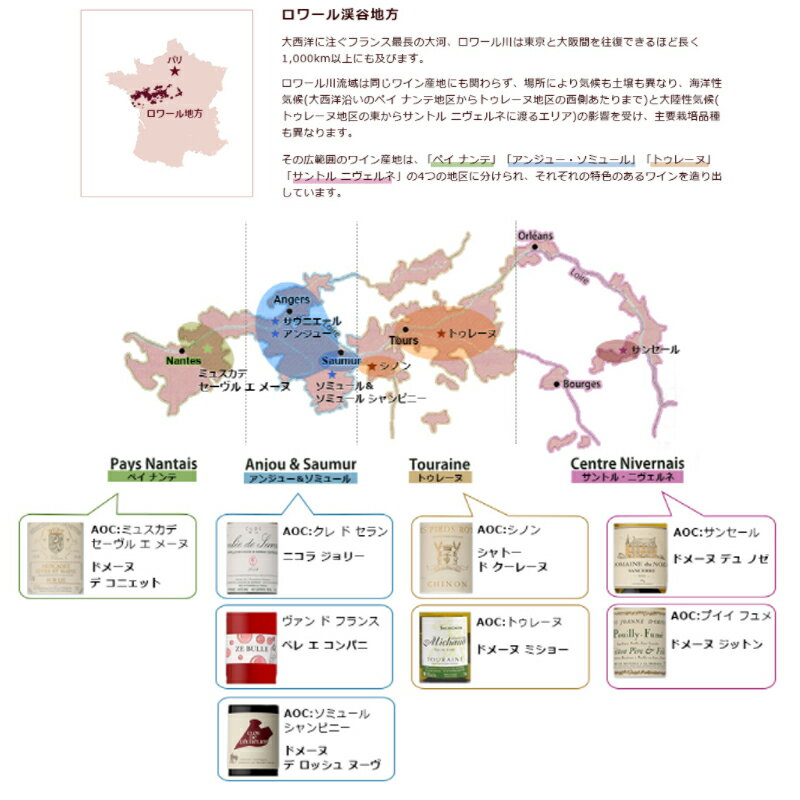 個性豊かなロワールワインセット これでフランス・ロワールワイン通になれるセットです! フランスの庭と称される風光明媚なエリア、ロワール地方はブドウ品種が多様で個性豊かなワインが造られる銘醸地。